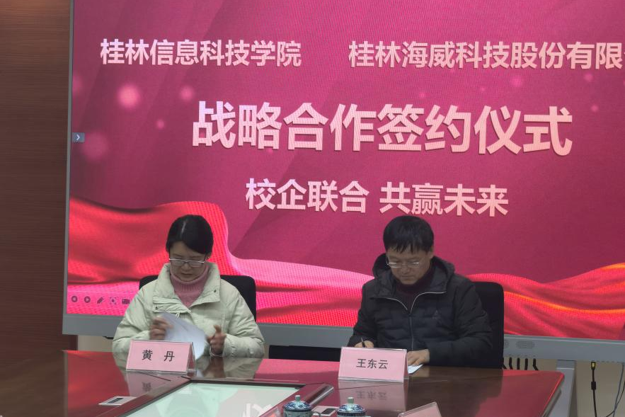 为推动产教深度融合、助力校企紧密合作,beat365与桂林海威科技股份有限公司于2月13日正式签订了战略合作协议,并举行了“校企协同育人基地”与“社会实践与劳动教育基地”授牌仪式。桂林海威科技股份有限公司副总黄丹、人事部经理张春红等领导,beat365副校长刘跃峰,校企合作处、电子工程学院相关负责人以及教师代表参加活动。
