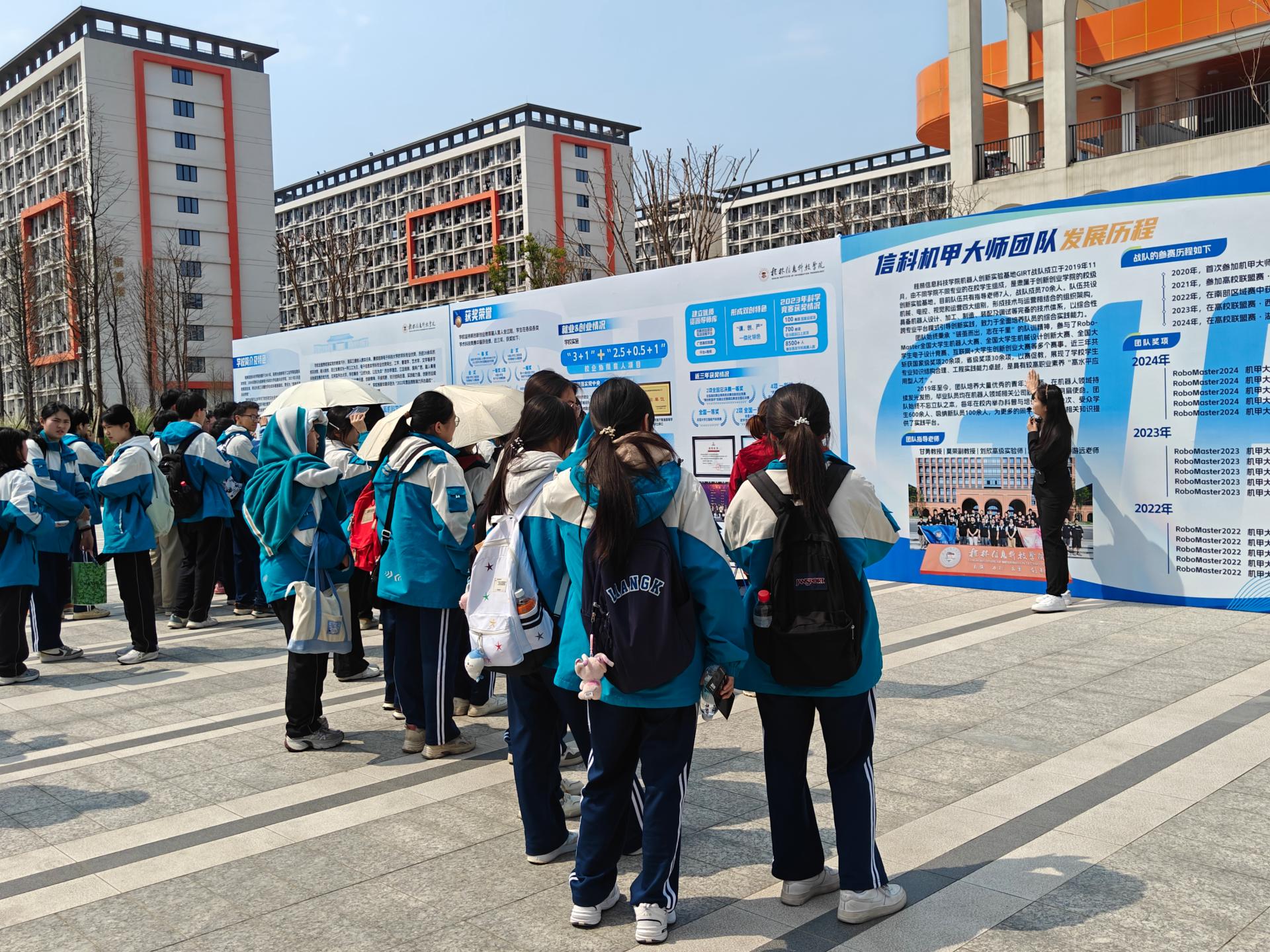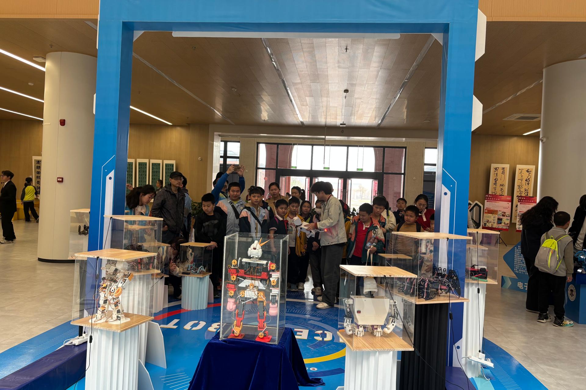 此外,创新创业学院学生管理委员会也派出了100余名学生参与了青年工程师大会与中小学入校参观的服务工作,他们以饱满的热情和专业的能力,为前来参观的中小学生详细解读了基地的创新作品,不仅展现了他们深厚的专业素养,也彰显了学校学生的青春风采和蓬勃朝气。
