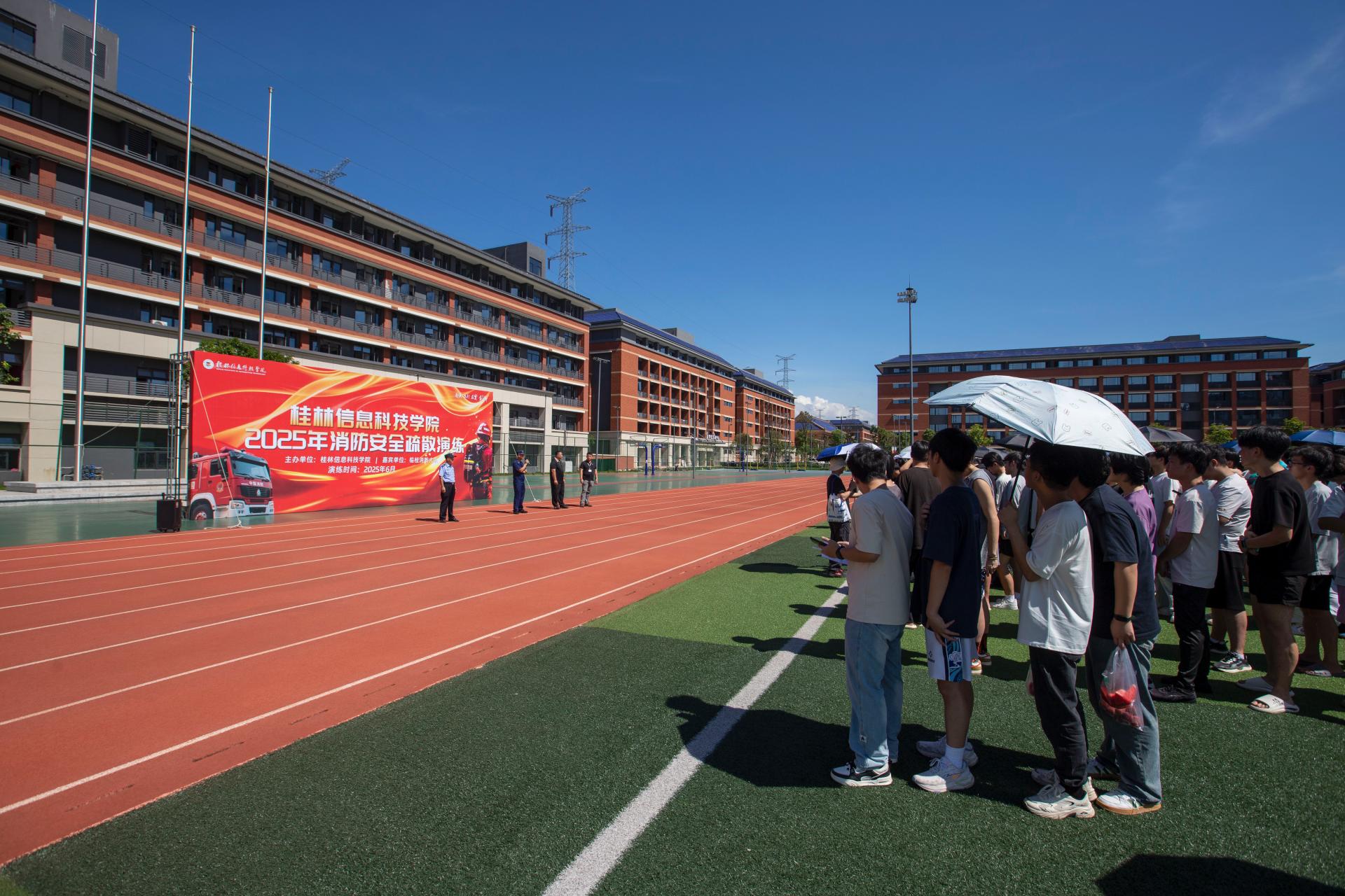 第三阶段,结合学校实际情况开展消防安全疏散演练活动。保卫处、学生发展与服务中心、后勤服务处联合临桂三元消防救援站针对学校公寓安全负责人、新入职教职员工、学生开展消防安全疏散演练,加强应急疏散知识与技能,学习灭火器、消防水带的使用技能,进一步提升师生员工的应急处置能力。