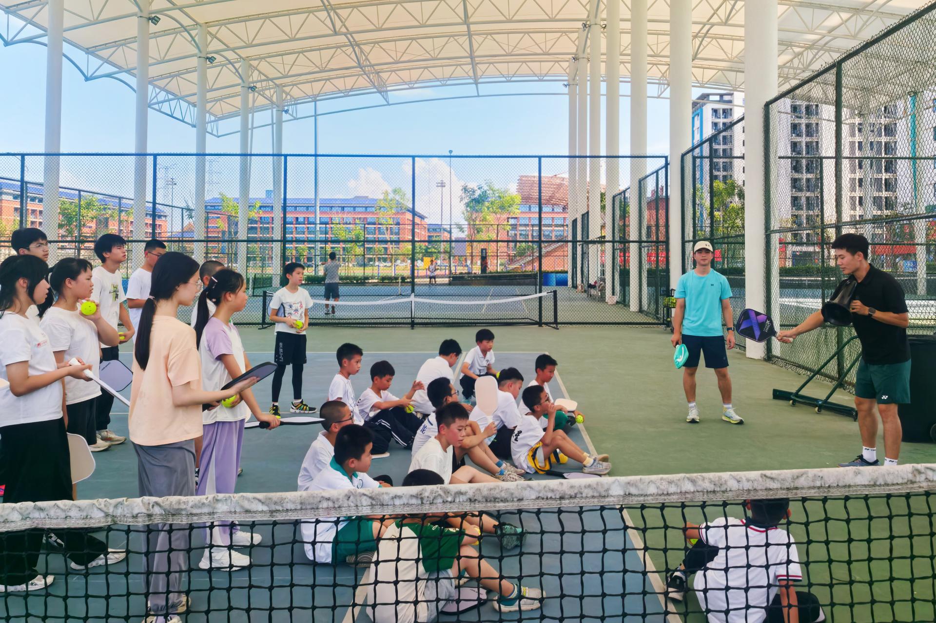 热血青春,驰骋球场。下午15:30,匹克球课程在学校网球场准时开启。体育与健康学院卢锦钊、温鹏两位老师带领大家进行匹克球基础练习,从握拍姿势到简单击球,大家在运动中舒展身心,在协作中感受运动的活力与乐趣。