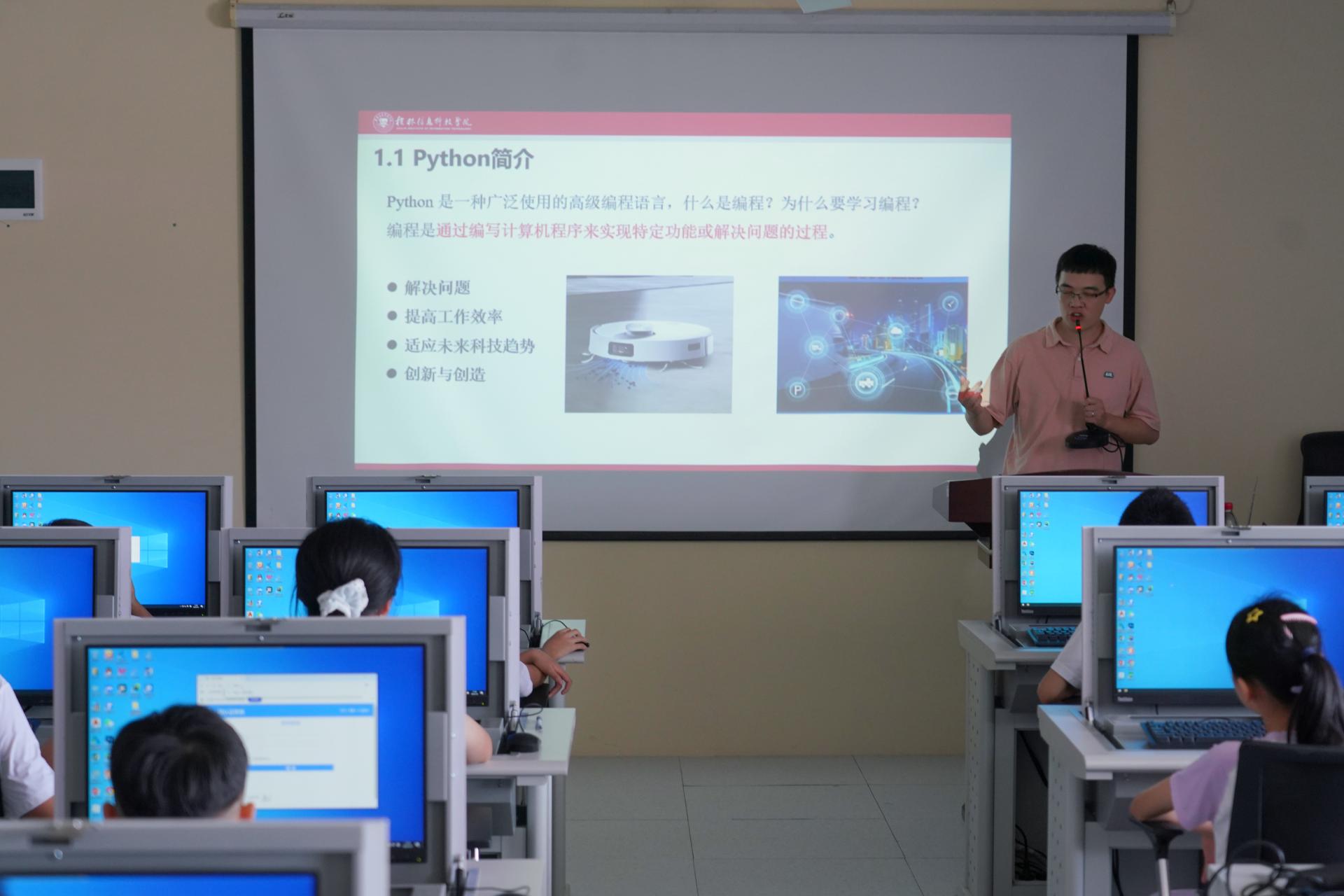 代码世界,智启未来。破冰训练后,Python编程课程在热切期待中正式开启。课堂上,人工智能创新中心秦嘉奇、唐燕龙、钟永主、宁钇霖四位老师凭借深厚的专业知识和生动的案例引导营员初识代码世界。他们巧妙设计了趣味互动环节,让营员们在轻松愉快的氛围中体验“人机对话”的奇妙,成功点燃了大家对科技探索的热情。