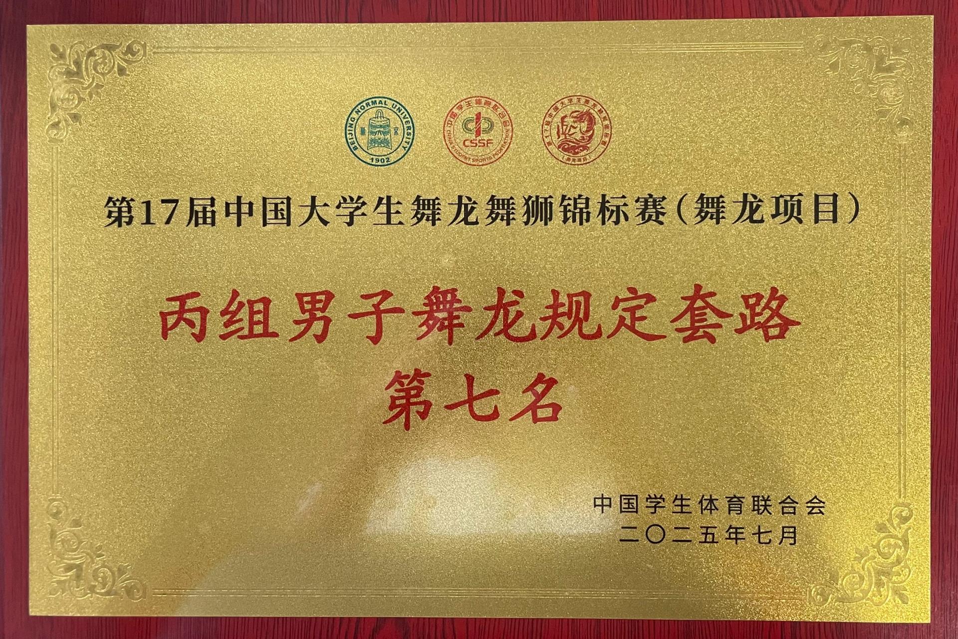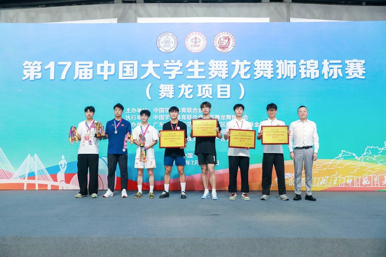 近日,由中国学生体育联合会主办,中国学生体育联合会舞龙舞狮分会执行,广东省北京师范大学珠海校区承办的第17届中国大学生舞龙舞狮锦标赛(舞龙项目)圆满收官。beat365体育与健康学院李炜老师带队参赛,荣获丙组(高水平组)男子舞龙规定套路全国第七名、男子舞龙自选套路全国第八名的佳绩。