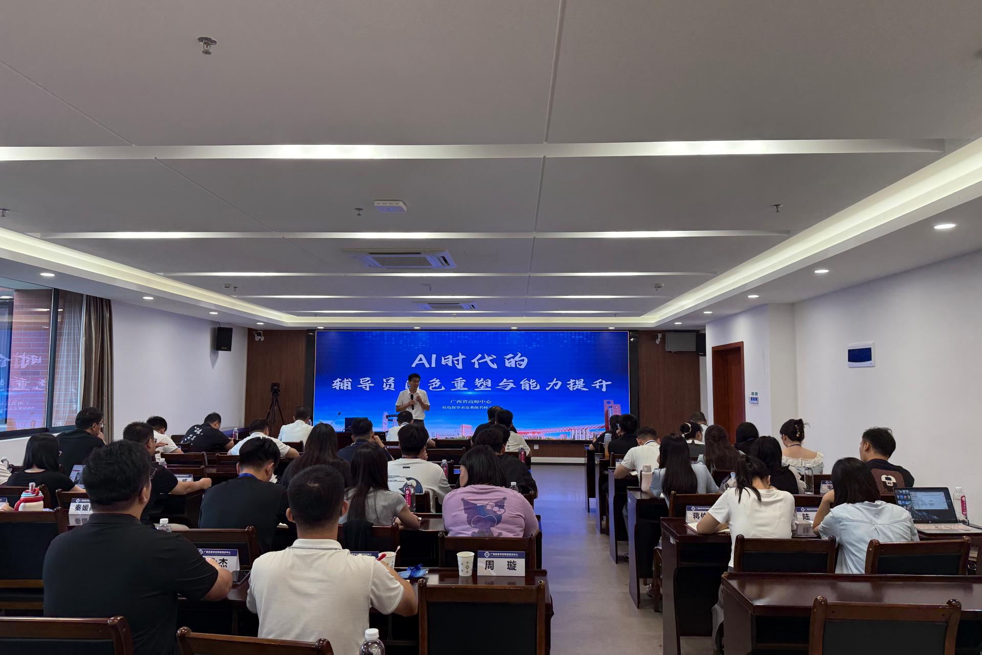 本次研修课程针对性强、内容前沿、形式多样。围绕“AI时代的辅导员角色重塑”“学生职业生涯规划指导”“学术研究与能力提升”“学生工作高质量发展”等热点议题,特邀杭州电子科技大学党委宣传部副部长、教育部高校网络教育名师程振伟,广西师范大学唐素勤教授、应用心理学专业硕士生导师杨洋,中共桂林市委党校周久贺副教授等专家学者进行专题授课。2024年全国高校辅导员素质能力大赛一等奖获得者班宁老师也亲临现场,分享了宝贵的备赛经验与实战技巧。