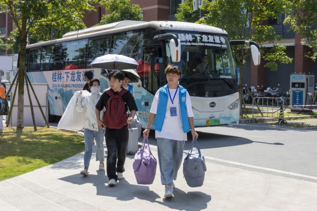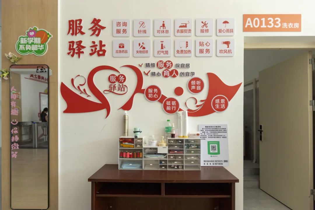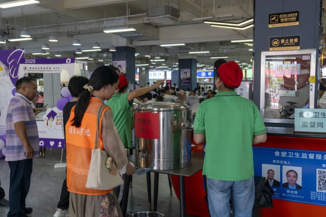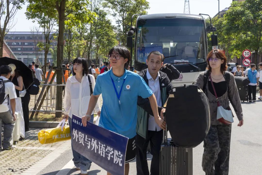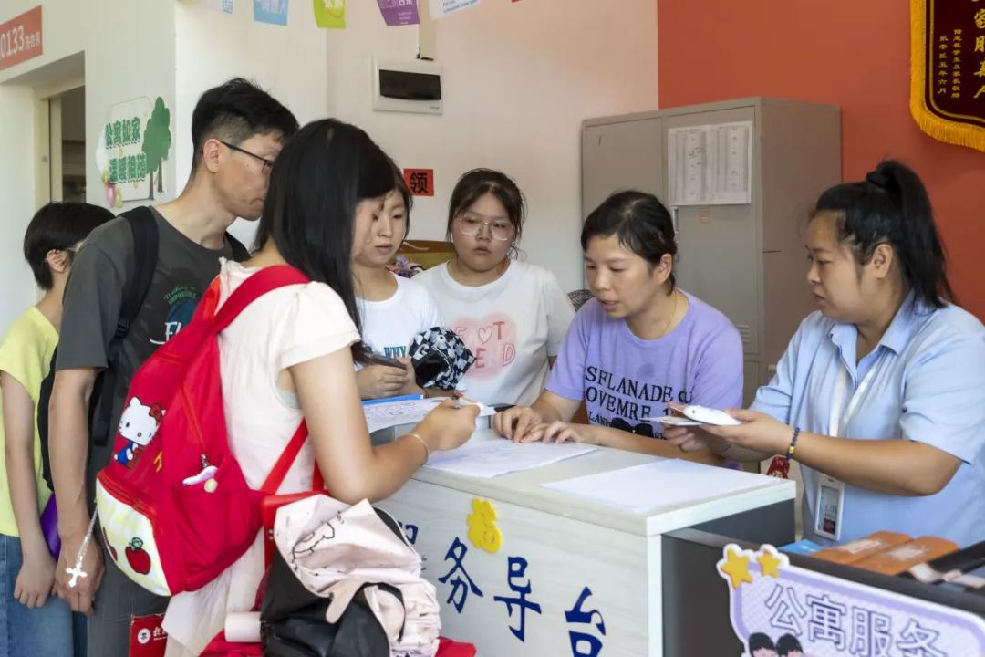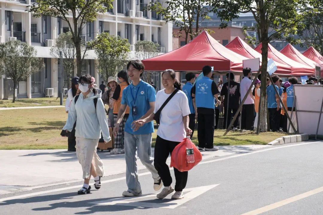校内动线实时调度,维持入校报到秩序。食堂餐饮,服务新生与家长休息。车辆随时迎接新生包裹接送,组织志愿者为新生提上行李。“有困难,找阿姨”从不只是一句口号,而是宿管人员以真心承诺。