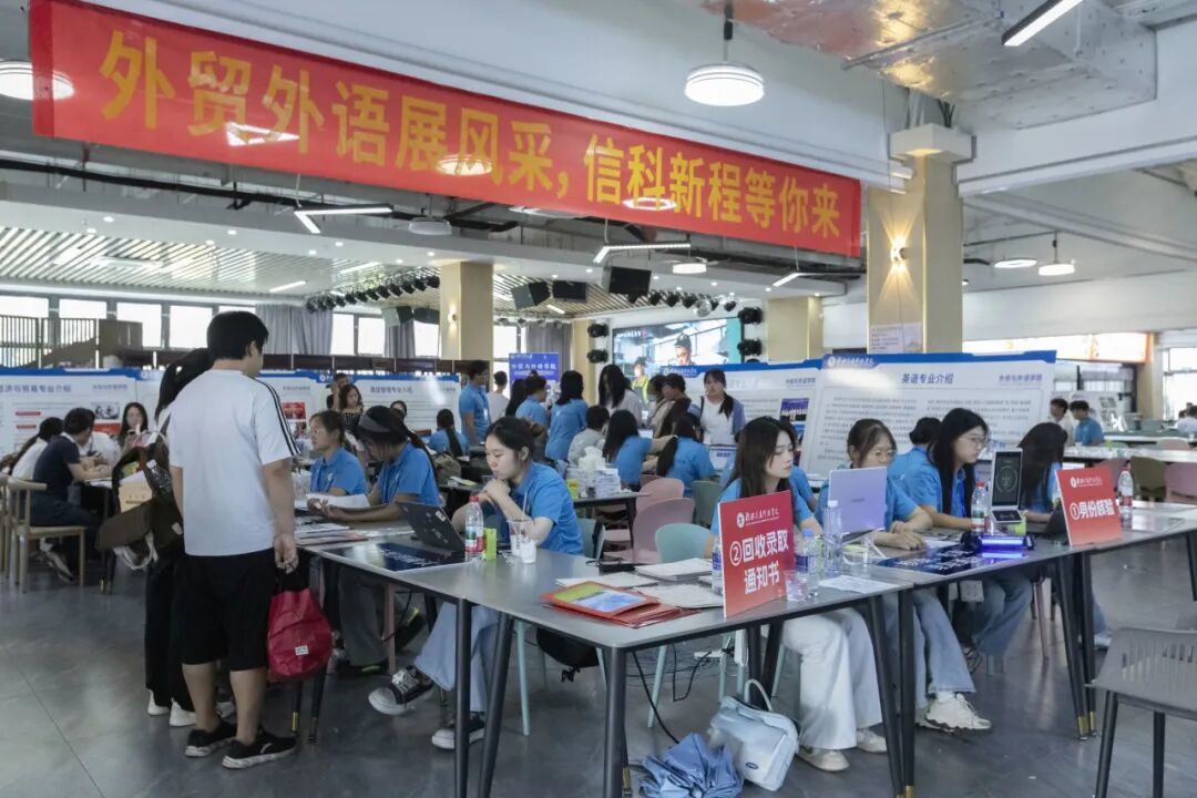 展板竖立,横幅挂起,来自陪伴与引导的那份温暖,标注那份奔赴山河的期许。这是专属于信科新生的满满归属感,愿予你最真挚的初遇。
