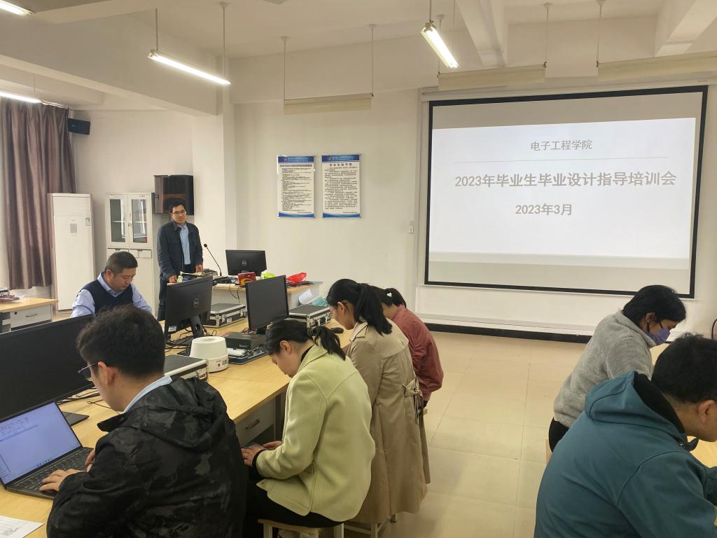 为加强学生毕业设计的规范性,提高毕业设计(论文)质量,3月8日中午,电子工程学院在41402实验室召开2023年毕业生毕业设计指导培训会,会议由学院院长韩桂明、副院长易艺主持,学院全体教师参加。