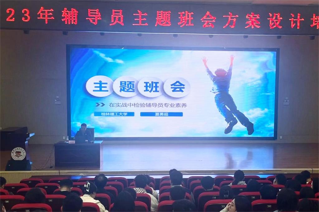 为全面提升辅导员开展主题班会方案设计能力,3月17日上午,学生工作部在51206教室召开培训会,本次培训会有幸邀请到桂林理工大学的高级辅导员夏勇超老师进行现场教学,示范如何上好一次生动有效的主题班会,培训会由学生工作部副部长文超老师主持,全体辅导员参加。
