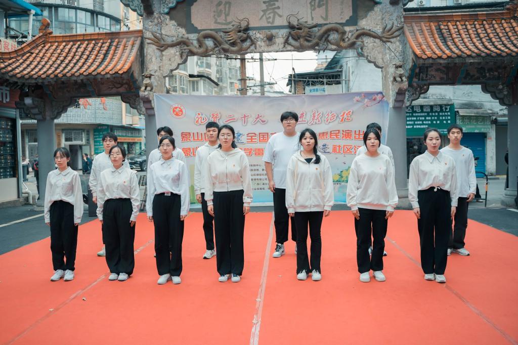 本场惠民演出以“礼赞二十大,奋进新征程”为主题,融汇歌舞、演讲、朗诵、合唱等丰富多彩的形式。由我院选送的演讲节目《一起向未来》以弘扬北京冬奥精神,彰显中国文化自信;民族舞节目《盛世华年》舞动多彩民族文化,展现绚丽民族风采;合唱曲目《你的答案》歌颂建党百年光辉历程,汇聚青春奋进力量。与民间艺术团共同呈现了一场精彩而热烈的惠民演出,吸引众多观众驻足观看。