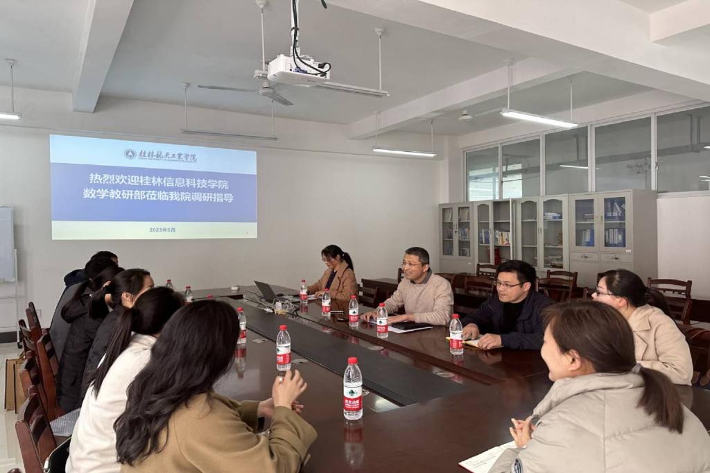 3月30日下午,数学教研部直属党支部刘映伶书记、张国新副教授等一行六人到桂林航天工业学院交流学习。桂林航天工业学院理学院郭述锋副院长、教研室主任袁媛、黄逸飞等人热情接待了beat365教师。