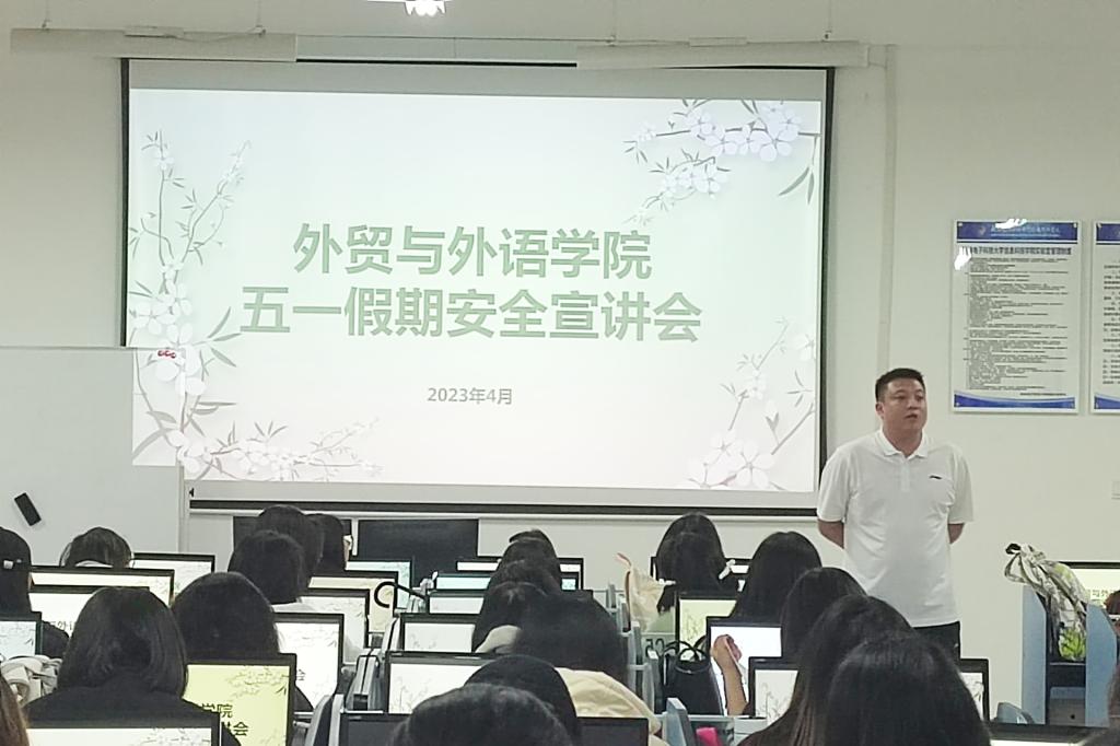 为做好假期安全主题教育工作,增强学生安全意识,提高学生自我防护能力,4月26日,外贸与外语学院各年级辅导员开展了假期安全主题教育。