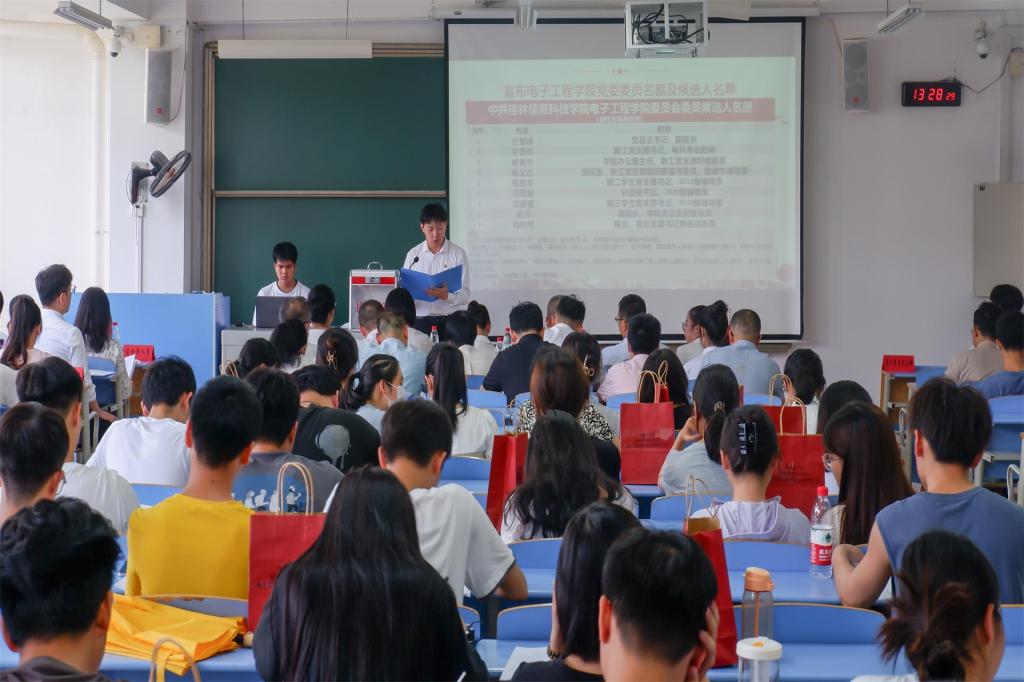 5月29日中午,电子工程学院党委在32307教室召开全体党员大会,开展学院党委委员选举工作。大会由学院组织员陈义红主持,学院党委110名正式党员参加会议。