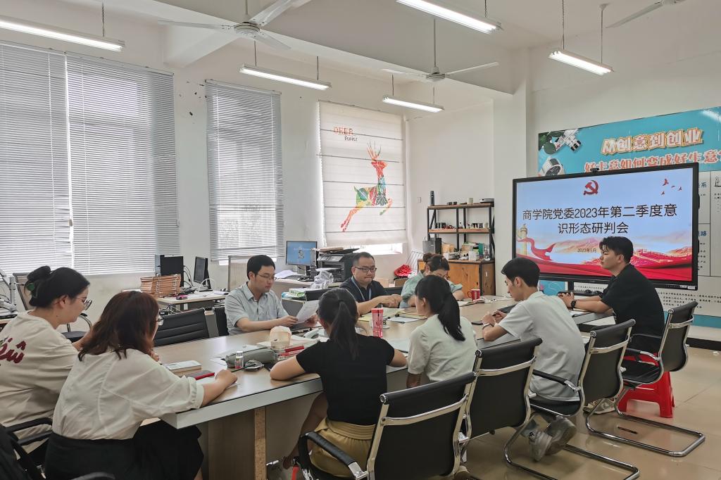 5月31日中午,商学院党委在11403会议室召开2023年第二季度意识形态工作分析研判会。学院党委委员、教研室主任、各党支部书记参加会议,会议由学院党委书记许奇主持。