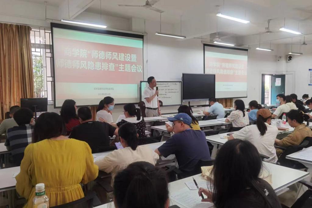 为了进一步加强师德师风建设,落实学校《关于开展全体教职工师德师风风险隐患排查的通知》工作要求,6月16日下午,商学院在11210室召开师德师风建设暨风险隐患排查专题会议。学院副院长罗志明、党委书记许奇及全体教职工参加会议。会议由党委书记许奇主持。