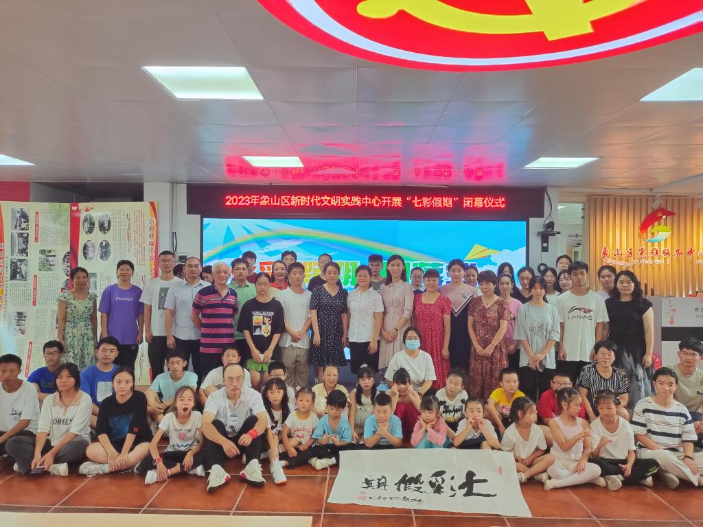 近日,象山区新时代文明实践中心“七彩假期”系列公益活动暨“八桂稚鹰”青少年志愿服务项目闭幕仪式顺利举行,马克思主义学院党总支教师代表们参加了此次活动。