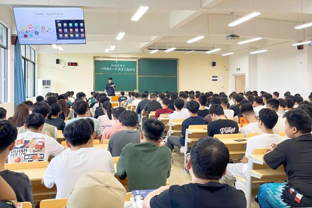 为帮助新生更好地适应大学生活、了解学院的教育理念和培养目标,引导学生做好自己的安全第一责任人。近日,机电工程学院在D107开展2023级新生入学教育,全体2023新生及辅导员参加活动。
