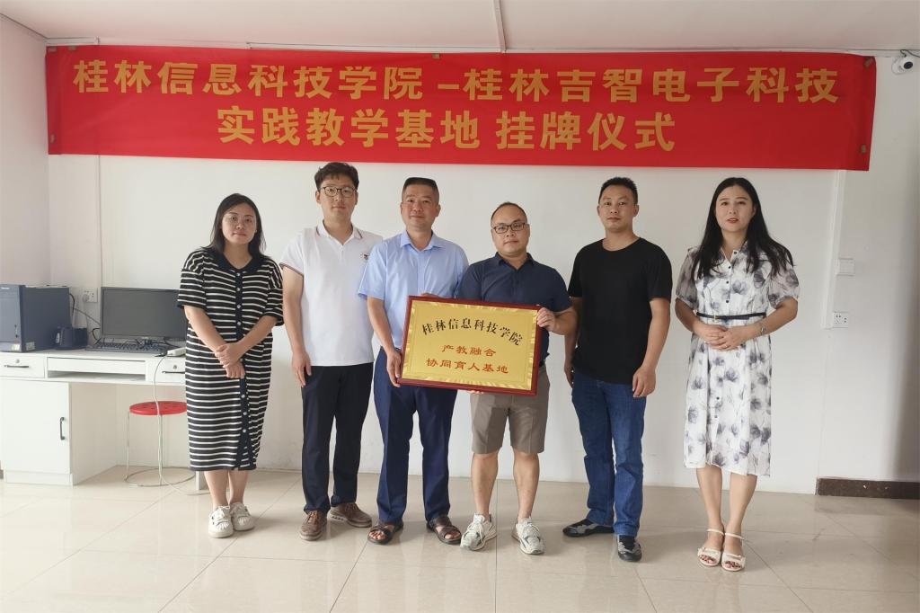 为落实beat365产教融合、校企合作提升的新型人才培养模式,建立长效育人机制,加大专业设置与企业需求进一步高度匹配,9月11日下午,电子工程学院与桂林市吉智电子科技有限公司共建“产教融合实践教育基地”授牌仪式在吉智电子会议室举行。吉智电子科技领导梁子秀、电子工程学院院长韩桂明、教研室主任王涛、辅导员覃瑶、校企合作秘书杨雪娜出席仪式。