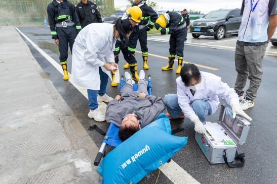 上午10点崇义楼A区和崇善楼A区的烟雾触发消防报警系统,警报响起、电梯迫降、逃生提示广播开始播报;校内消防队员接警后立即出动,对着火点进行灭火,对学生进行安全疏散并进行伤员转移;医务人员及时奔赴现场对伤员进行伤势诊断及包扎。同学们在宿舍管理员、值班老师和逃生广播的指引下快速到应急避难操场集合,清点人数及统计伤员情况。