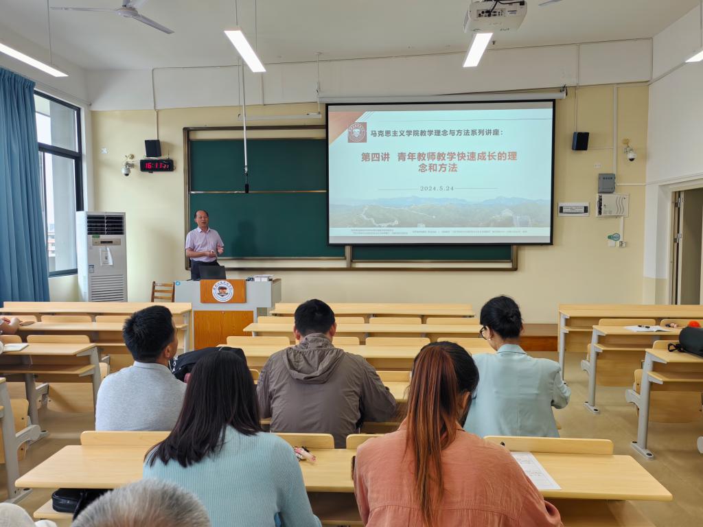 邱院长以“青年教师教学快速成长的理念和方法”为题,从“多听课、勤读书、受指导、写思路、练提升”等五个方面进行深入讲解,强调青年教师应当虚心请教,积极主动地向他人学习;还应阅读大量文献资料以及马克思主义原著等相关书籍,不断丰富教学内容,突破教学重点难点,将个人对教学的认识和理解提升到更高层次。