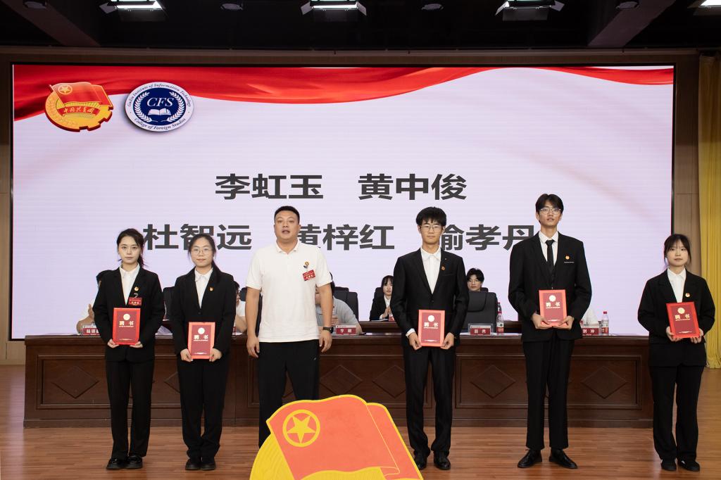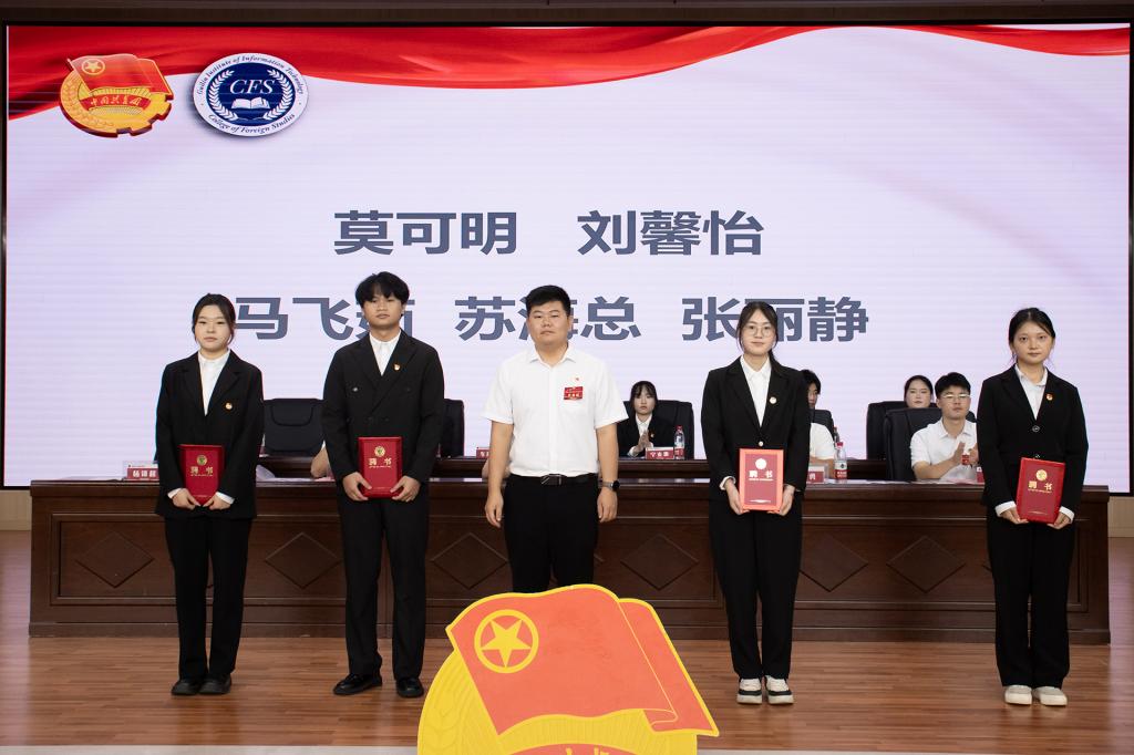 外贸与外语学院副院长、党总支书记李刚为上一届团委委员颁发聘书