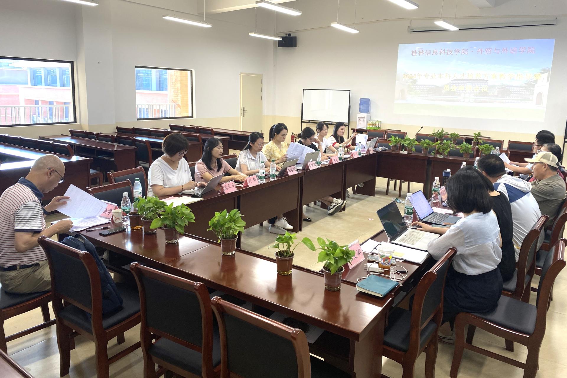 8月26日,外贸与外语学院在学院会议室召开了“2024年专业本科人才培养方案教学指导委员会审核会议”。会议由学院教学指导委员会主任委员韦储学教授主持,全体教指委委员及各专业教研室主任参加了会议。会议旨在深入探讨各专业本科人才培养方案的修订情况并广泛听取专家委员会的宝贵意见,从而进一步提升学院教学质量。会议上,王家年院长强调,人才培养方案的论证工作是专业建设的基石,对于提升教学质量、促进学生全面发展具有重要意义,全体参会人员需高度重视此次会议,确保专业人才培养方案的修订工作能够顺利进行并得到有效落实。