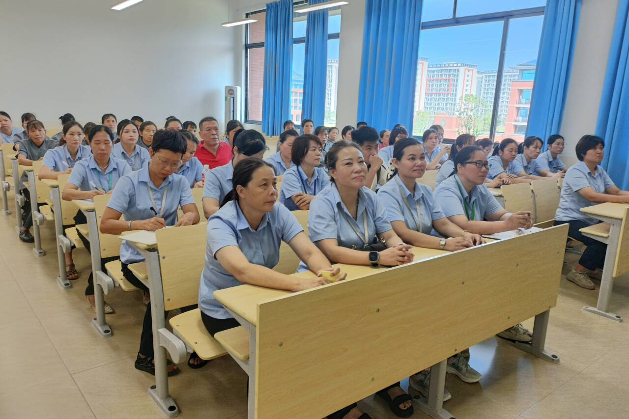 在培训会上,覃老师深入探讨了职业道德、职业素养和服务质量三大核心议题,结合实际工作情况,进行了全面而深刻的阐释。他强调了职业道德的重要性,指出爱岗敬业、诚实守信、办事公道是每位员工必须遵循的行为准则,并着重强调了专业技能提升、沟通能力强化以及团队协作精神在提高服务质量中的关键作用。覃老师还明确提出了以学生为中心的服务理念,并详细讲解了如何通过加强安全管理、保持卫生清洁、及时进行维修维护等措施来全面提升服务质量。他要求全体员工始终将满足学生的需求和满意度放在首位,以实际行动来实现服务宗旨。