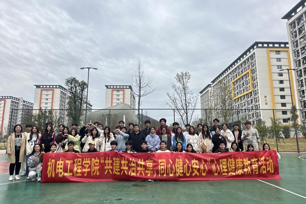 为宣传心理健康知识,引导同学们增强心理抵抗能力,11月30 日,机电工程学院在学校篮球场开展“共建共治共享,同心健心安心”心理健康教育活动,2024级班级学生代表共40名同学共同参与了本次活动。