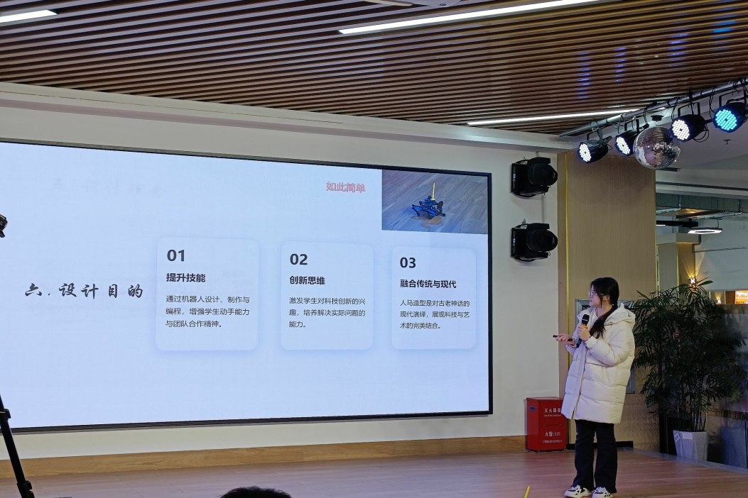 比赛中,各组队伍从设计思路、设计及开发过程、设计成果等方面进行汇报,汇报完毕后机器人进行舞蹈表演。参赛团队以各种奇思妙想设计出了各种样式的机器人,这体现出了舞蹈机器人的创作不仅需要具备扎实的工程技术基础,还要拥有丰富的艺术创造力。