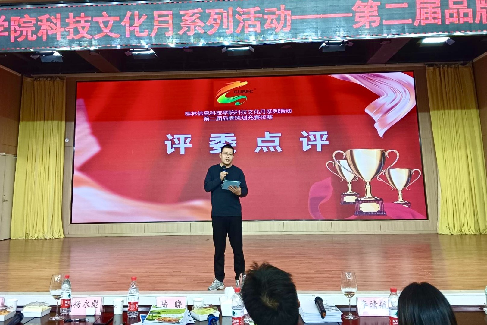 12月15日,学校科技文化月系列活动--beat365官方网站第二届品牌策划竞赛校赛暨2025年全国高校商业精英挑战赛品牌策划竞赛全国总决赛的校内选拔赛在F107报告厅举行。外贸与外语学院副院长陆晓、副院长赖安、酒店管理教研室杨永彪博士、国际商务教研室主任高宇老师和商务英语教研室主任李靖航老师担任本次竞赛评委。