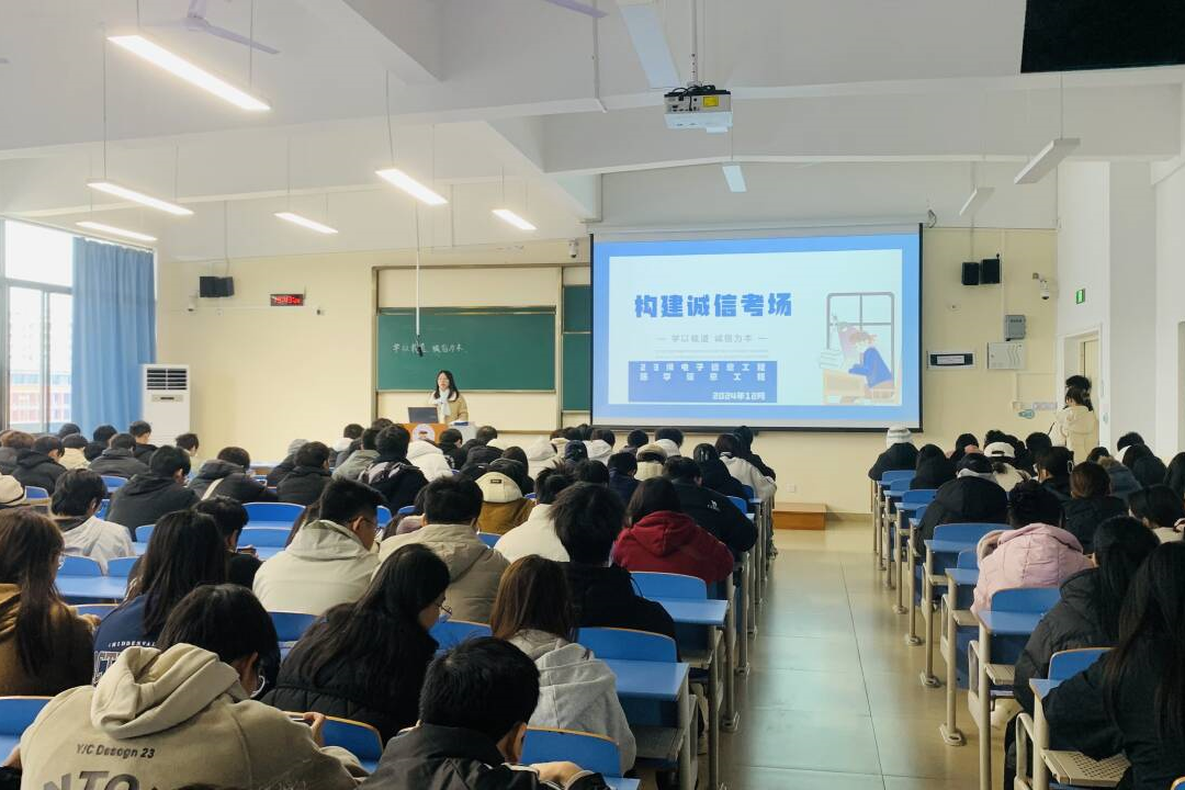 为进一步增强学生诚信意识,引导学生自觉遵守考试纪律,确保考试的公平与正义,营造良好的考试氛围。电子工程学院于12月13日在D508、D509教室召开诚信考试教育大会。此次大会由各年级辅导员主持,学院全体学生参加。