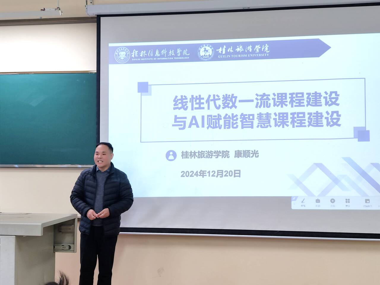 12月20日下午,桂林旅游学院旅游与数据学院副院长康顺光教授应邀来beat365数学教研部讲学,会议由数学教研部主任谢永安主持,数学教研部全体教师参加。