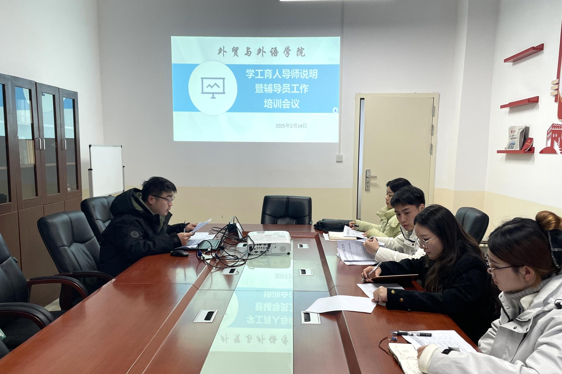 2月14日,外贸与外语学院于博文楼F515开展学工育人导师说明暨辅导员工作培训会议。本次会议聚焦青年辅导员的成长与发展,育人导师李刚与青年辅导员曹梦、张慧芳、尹凌云、蒋湘林积极参与,深入交流探讨,为提升学院学生工作质量注入新动力。