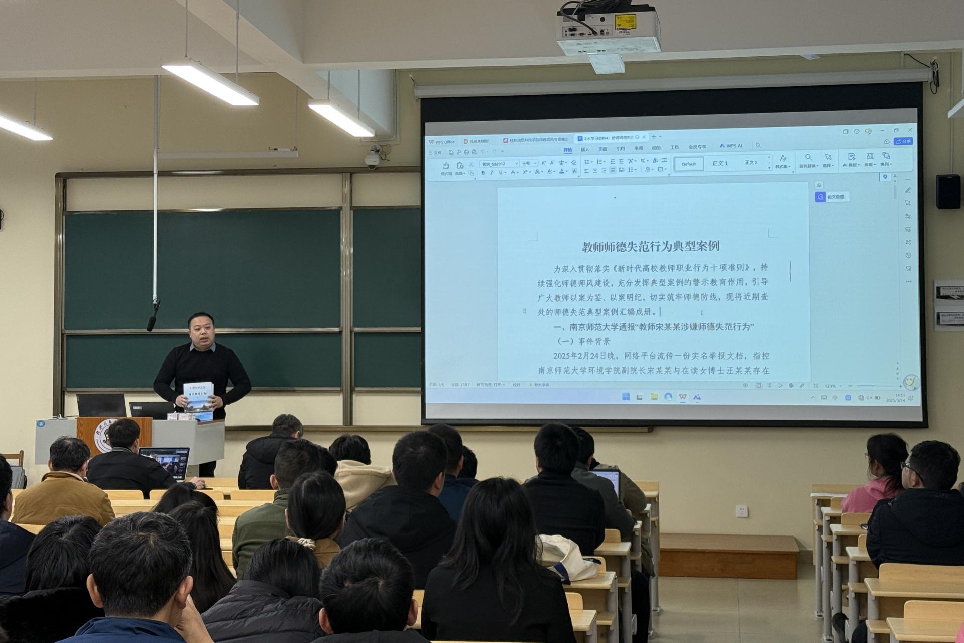 会上,文书记首先强调了师德师风建设的重要性和紧迫性,指出在新时代背景下,加强师德师风建设是提升教育教学质量、培养高素质人才的关键环节。文书记带领全体教职工深入学习了《中共中央国务院关于弘扬教育家精神加强新时代高素质专业化教师队伍建设的意见》《高校教师职业行为十项准则》,详细解读了坚定政治方向、自觉爱国守法、传播优秀文化、潜心教书育人、关心爱护学生、坚持言行雅正、遵守学术规范、秉持公平诚信、坚守廉洁自律、积极奉献社会等十项准则的具体要求。同时通报了近年来发生的师德失范行为典型案例,深刻剖析了这些案例的成因、危害及教训。并公布学校及学院师德师风监督举报邮箱、联系电话。他强调,师德师风是教师立身之本、发展之基,全院教职工要以本次会议为契机,进一步增强师德意识,提升师德水平。