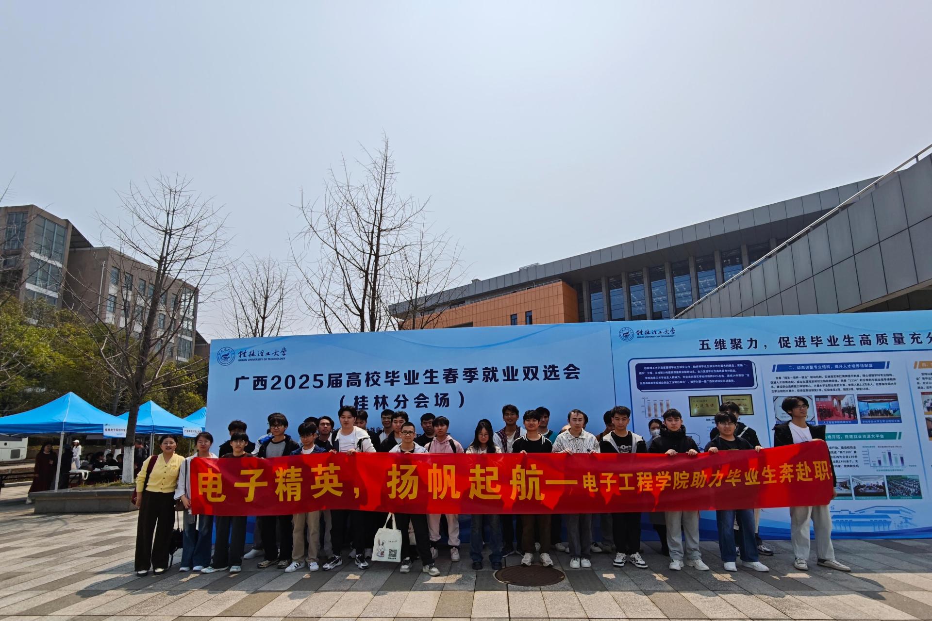 为抢抓春招关键期,助力毕业生高质量就业,3月22日,电子工程学院毕业班辅导员带领60余名2025届毕业生赴桂林理工学院参加“‘职’启新程,‘位’你而来”广西2025届高校毕业生春季就业双选会(桂林分会场)。