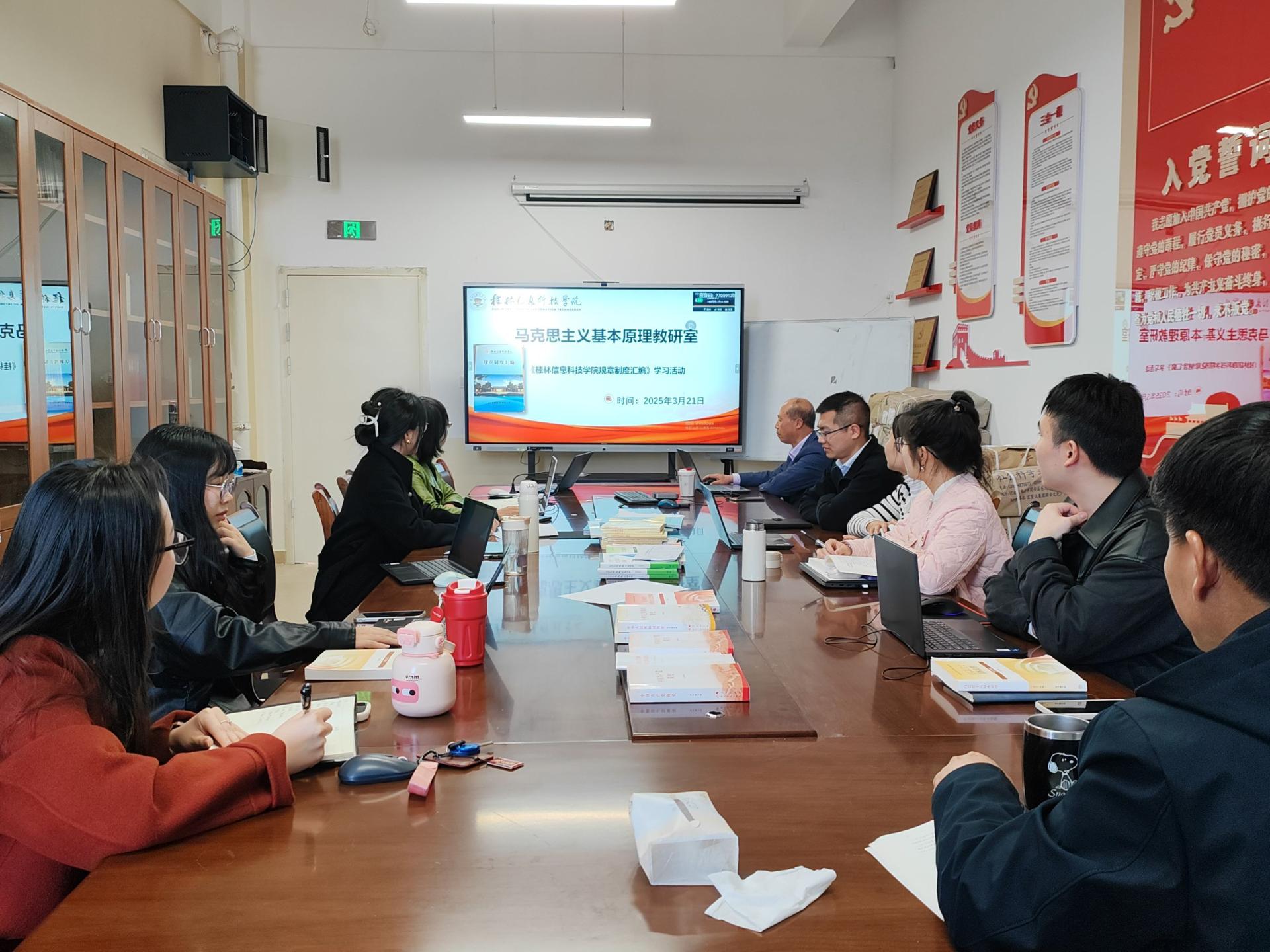 3月15日至23日,为深化教职工对学校规章制度的理解,提升纪律意识和规范化工作水平,马克思主义学院采取自学、教研室研讨和院会学习等多种形式,开展了《beat365官方网站规章制度汇编》专题学习。