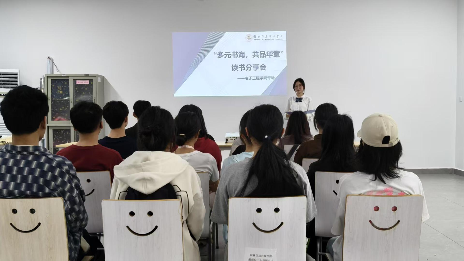 在活动中,各学院结合自身特色开展书单分享。信息工程学院以科普探索类书籍为载体,用生动语言解读宇宙奥秘与微观世界;电子工程学院精选励志成长类书籍,借坚韧故事点燃听众奋斗热情;机电工程学院通过人工智能类书籍,解读前沿科技、构建未来图景;商学院围绕人文社科书籍,解构经典理论、辨析社会现象;创意设计学院以美学为核心,在二维与三维转换中展现创意灵感;外贸与外语学院依托世界文学经典,搭建文化交流桥梁;体育与健康学院聚焦生命教育,揭示身体密码、传递健康理念。现场氛围热烈,思想火花在不同类型的书单碰撞中不断迸发,让听众在沉浸式体验中实现认知拓展与情感共振。