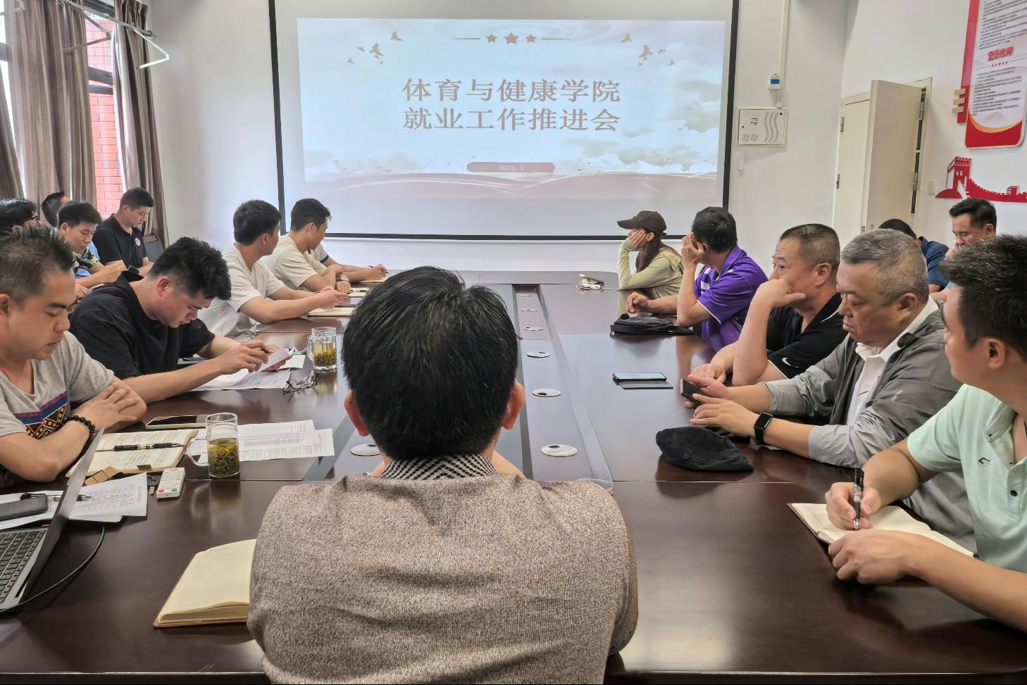 5月19日,体育与健康学院在行健楼205会议室,召开2025届毕业生就业工作推进会。学院党政领导班子、教研室主任、毕设导师、学工办主任及毕业班辅导员参会,会议由体院党总支书记关永康主持。