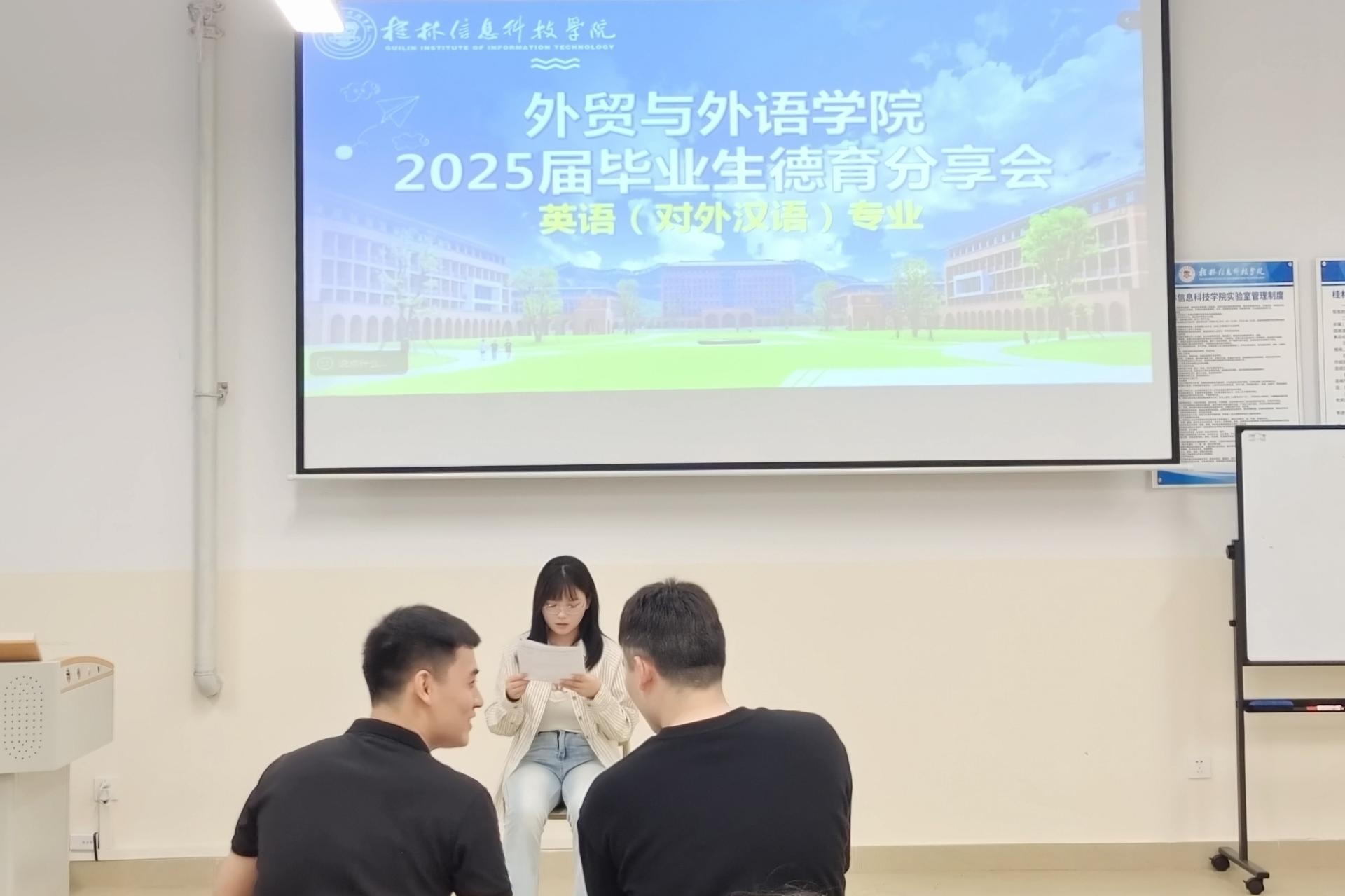 会上,36名学生围绕生态文明建设、坚守和弘扬中华民族传统美德,如何实现人生价值等10个核心主题进行分享,分享主题鲜明、内容丰富,积极向上,展现我院学子良好的精神风貌。随后,毕业班辅导员根据同学们的精彩分享进行点评:作为即将步入社会的当代大学生,要不断树立爱党爱国爱人民的思想基础,增强国家意识和社会责任意识;要养成良好政治素质、道德品质、法治意识和行为习惯;作为外语外贸人,要了解中华优秀传统文化,增强文化自觉和文化自信,以肩负的国家使命,家庭、社会、个人责任感、勇于突破自我、拥抱社会,积极就业;最后,马克思主义学院细致探析了学生在分享会中分享的实例并进行详细解答,并勉励大家以高度的责任心与饱满的热情,追求卓越。