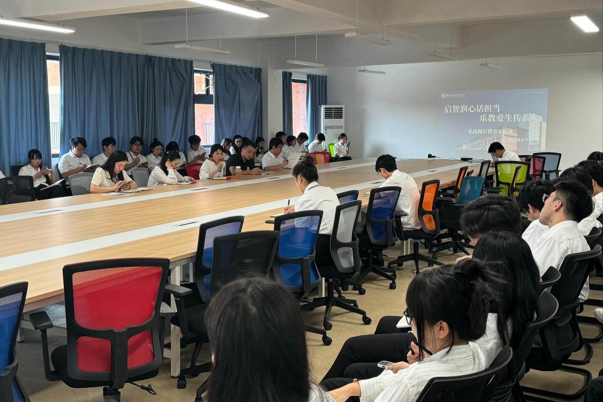座谈会上,教职工积极互动,深化教育家精神践行路径。通过质朴的面对面交流,彰显了教育家精神于日常坚守中的生命力,为培养新时代设计英才凝聚了坚实力量。