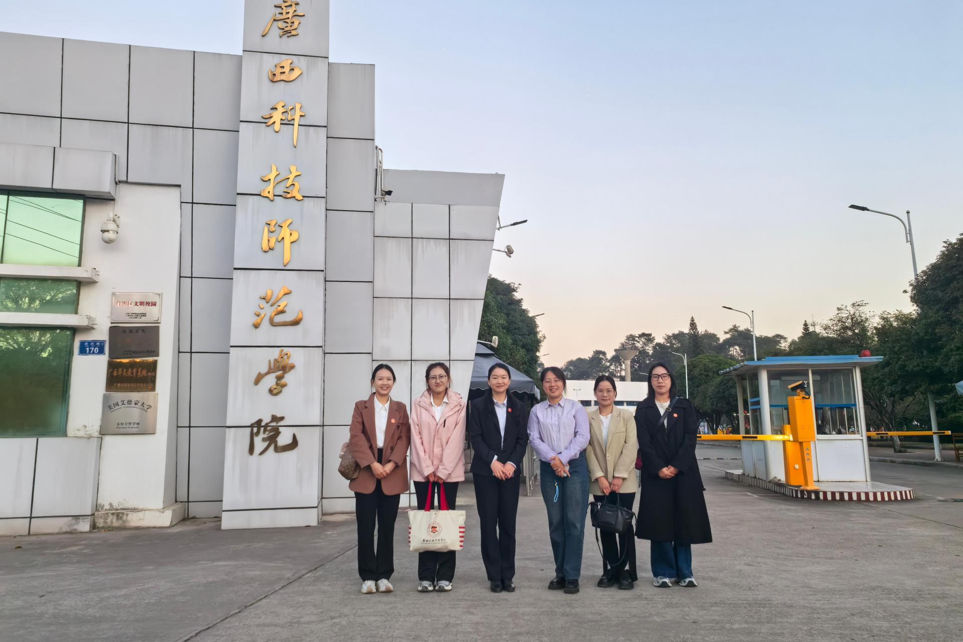 为学习借鉴其他高校先进工作经验,进一步提升党建、学生管理与宣传工作水平,11月25日,电子工程学院党委书记梁自珍带领学院辅导员代表一行4人,前往广西科技师范学院先进制造工程学院进行对口交流。