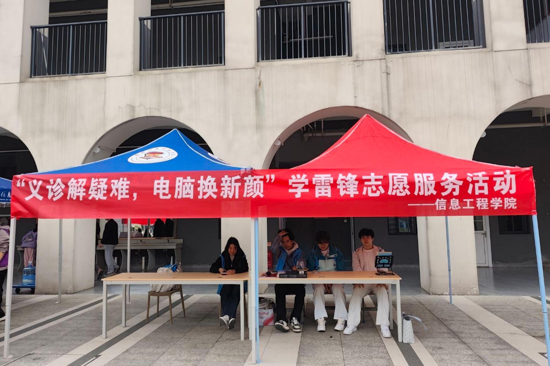 三月春风暖,雷锋精神传。为弘扬“奉献、友爱、互助、进步”的志愿服务理念,解决师生及社区群众电脑使用难题,3月17日至18日,信息工程学院组织开展“义诊解疑难,电脑换新颜”学雷锋志愿服务活动。学院团委学生会成员、学院学生干部及青年志愿者组成技术服务队,在食堂门口设立服务点,为全校师生提供电脑义务维修与咨询服务。