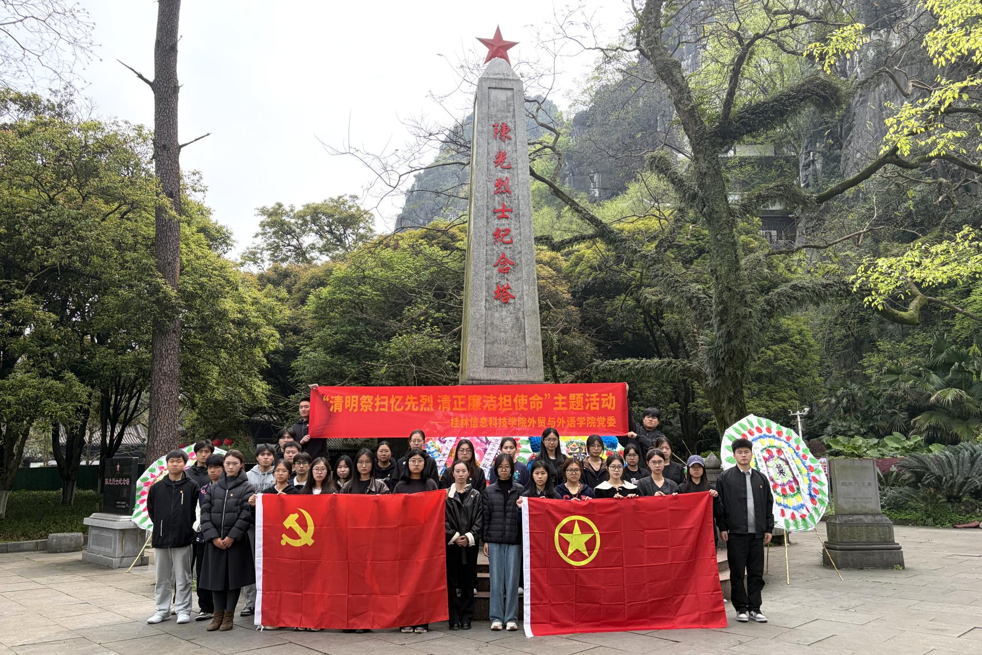 为深切缅怀革命先烈,传承红色基因,深化廉政教育。2026年3月26日,beat365官方网站外贸与外语学院党委、团委联合桂林市穿山社区党委,组织30余名党员和团员前往桂林市七星公园陈光烈士墓,开展“清明祭扫忆先烈 清正廉洁担使命”共建共联主题党日活动,以实际行动致敬英烈、践行使命。