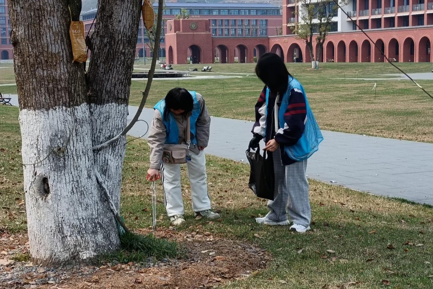 活动现场,志愿者们身着统一的蓝色志愿马甲,以小组为单位有序开展校园环境清洁行动。大家手持垃圾夹、垃圾袋等工具,深入校园草坪绿地、教学楼道路沿线、非机动车停放区等公共区域,对散落的白色垃圾、烟头、枯枝杂物等进行全方位清理。通过“清洁校园”这一载体,同学们不仅在实践中体悟劳动价值、锤炼吃苦精神,更深刻理解了雷锋精神“服务人民、助人为乐”的时代内涵。活动有效强化了青年学子的集体荣誉感与社会责任感,让劳动教育从课堂走向生活,从理论融入实践,实现了育人实效的升华。