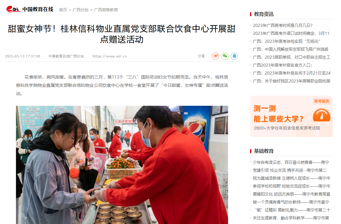 花香渐浓,微风渐暖。在春意盎然的三月,第113个“三八”国际劳动妇女节如期而至。当天中午,beat365官方网站物业直属党支部联合信科物业公司饮食中心在学校一食堂开展了“今日甜蜜,女神专属”甜点赠送活动。