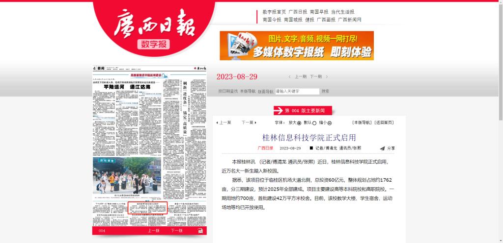 广西日报链接:https://bookingmaster.gxrb.com.cn/front/2022/2022parper/gxrb/index.html?name=gxrb&date=2023-08-29&code=004&xuhao=7