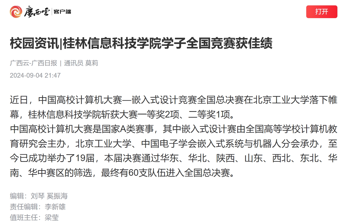 广西日报链接:校园资讯|beat365官方网站学子全国竞赛获佳绩 (cloudgx.cn)