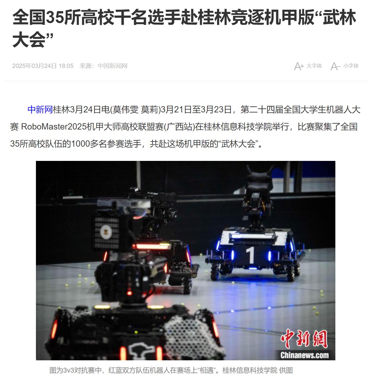 中国新闻网链接:全国35所高校千名选手赴桂林竞逐机甲版“武林大会”