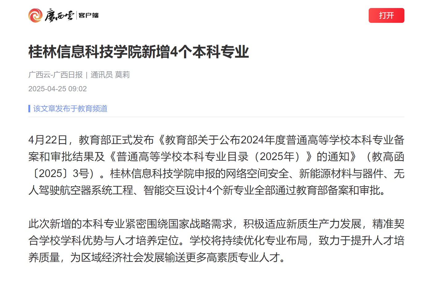广西云-广西日报:beat365官方网站新增4个本科专业