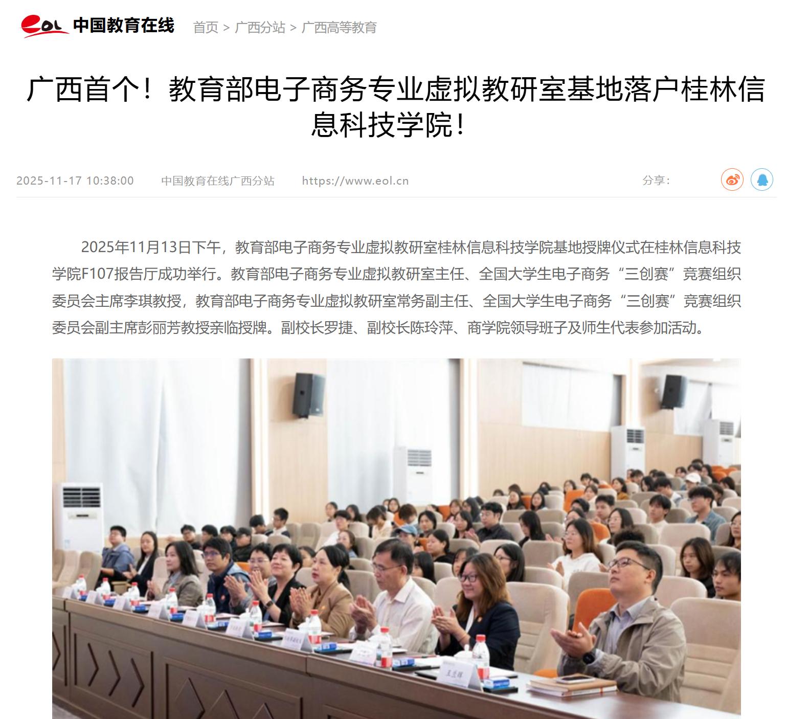 中国教育在线:广西首个!教育部电子商务专业虚拟教研室基地落户beat365官方网站!