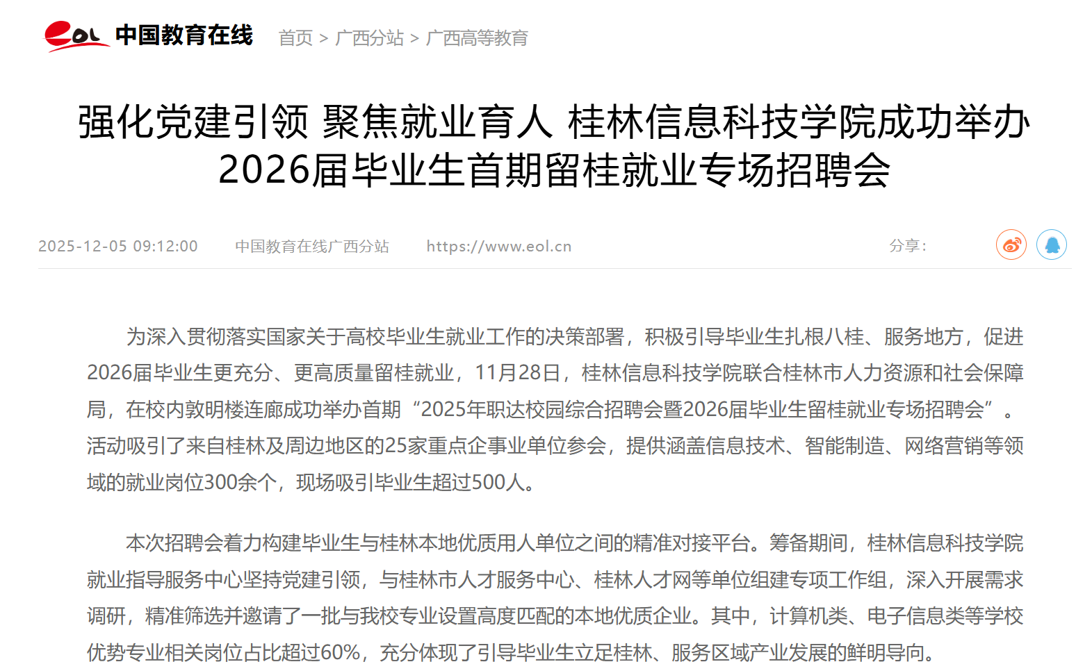 中国教育在线:强化党建引领 聚焦就业育人 beat365官方网站成功举办2026届毕业生首期留桂就业专场招聘会