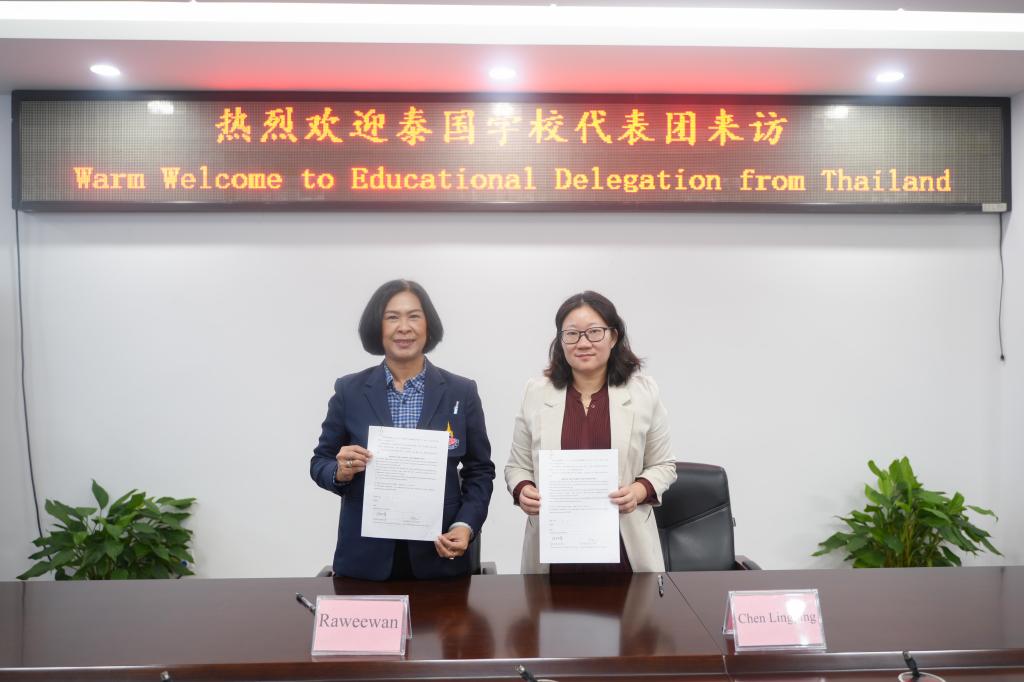 会谈结束后,陈玲萍副校长代表beat365官方网站与素拉萨蒙蒂学校、玛哈普塔拉寺女子学校、拉差达预科教育发展学校、威鲁瓦纳兰寺学校和素丽约泰女子高中签署教育合作协议。